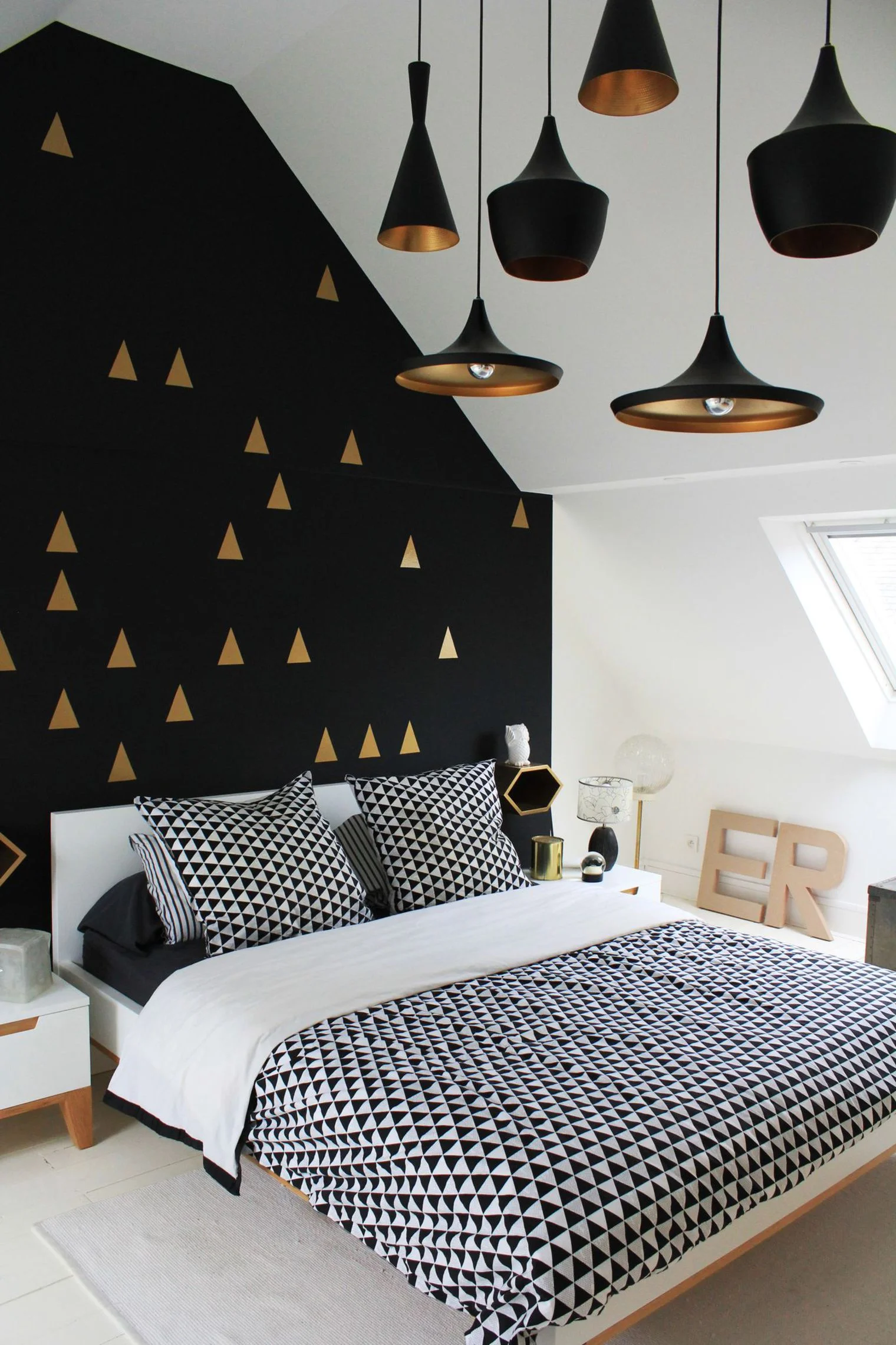 Црниот ѕид може да изгледа интересно и ако е украсен со самолепливи стикери во бела, златна или сребрена боја. Тие може да бидат долгорочен избор или само сезонска декорација.
